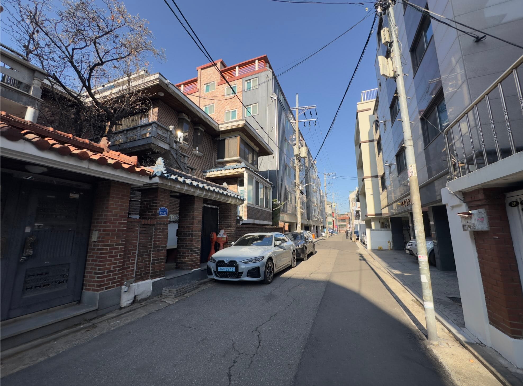 A mix of multi-family houses and newer low-rises as you drift toward Hapjeong.